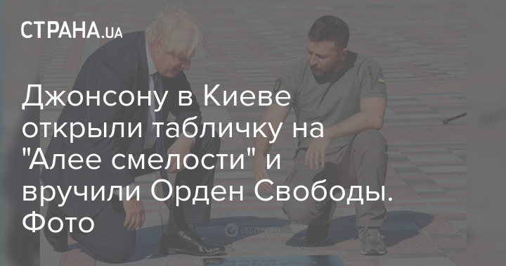 Джонсону в Киеве открыли табличку на "Алее смелости" и вручили Орден Свободы. Фото