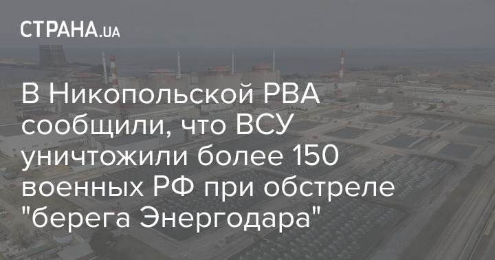 В Никопольской РВА сообщили, что ВСУ уничтожили более 150 военных РФ при обстреле "берега Энергодара"