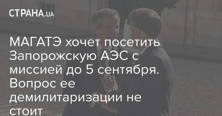 Глава МАГАТЭ Рафаэль Гросси анонсировал визит на Запорожскую АЭС в ближайшее время после встречи с президентом Франции Эммануэлем Макроном. По данным некоторых СМИ, МАГАТЭ хочет посетить Запорожскую АЭС с миссией до 5 сентября.