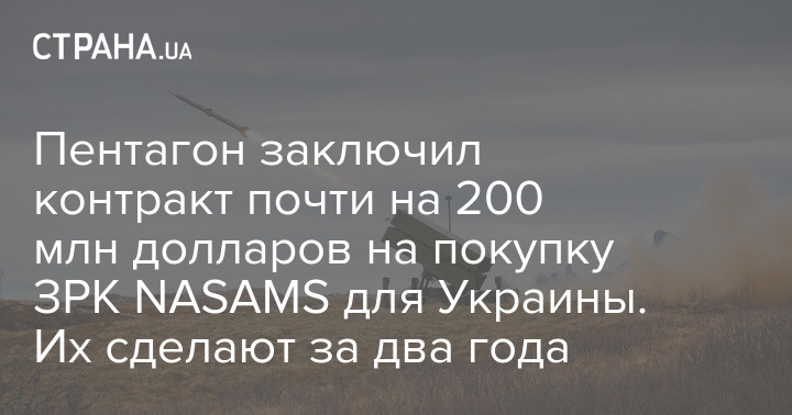 Пентагон заключил контракт почти на 200 млн долларов на покупку ЗРК NASAMS для Украины. Их сделают за два года