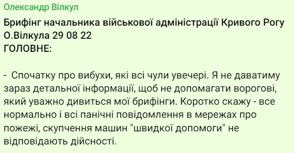 23.38 Глава военной администрации Кривого Рога Александр Вилкул фактически подтвердил информацию о прилетах в город.