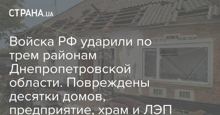 Войска РФ ударили по трем районам Днепропетровской области. Повреждены десятки домов, предприятие, храм и ЛЭП
