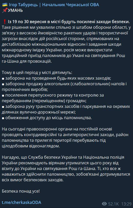 Напомним, что хасидам не стали запрещать праздновать Рош-ха-Шана в Умани, но СБУ рекомендуют этого не делать из-за угрозы провокаций и ракетных ударов.
