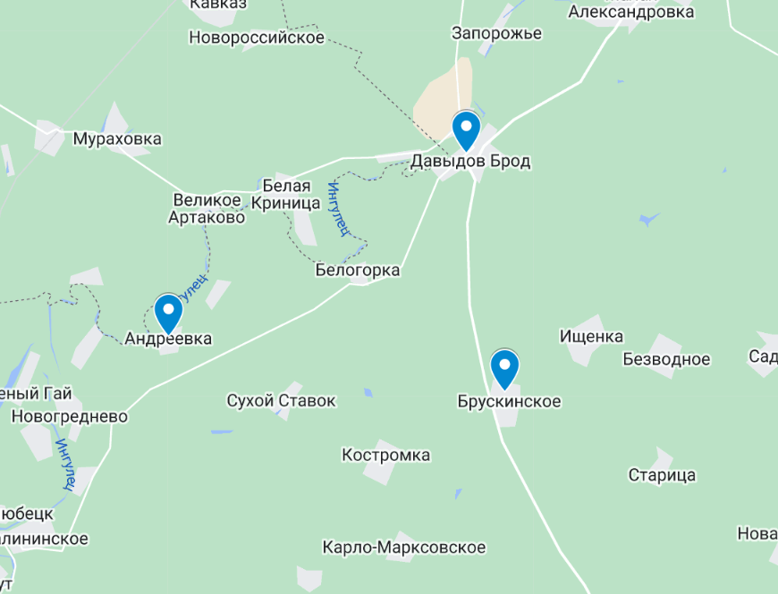 Сообщается, что южнее Давыдова Брода ВСУ отошли от Брускинского - важного пункта на трассе, по которой Давыдов Брод снабжается с юга. По другим участкам ВСУ, по данным россиян, продолжает атакующие действия, чтоб прорвать линию фронта (либо расширить уже занятые выступы), а российская армия держит оборону и наносит артиллерийские и ракетно-бомбовые удары по украинским подразделениям и по их линиям снабжения (в том числе и по переправам через Ингулец).