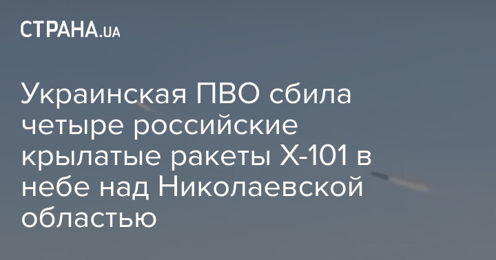 Утром во вторник, 6 сентября, в небе над Николаевской областью силы ПВО уничтожили четыре крылатых ракеты Х-101.