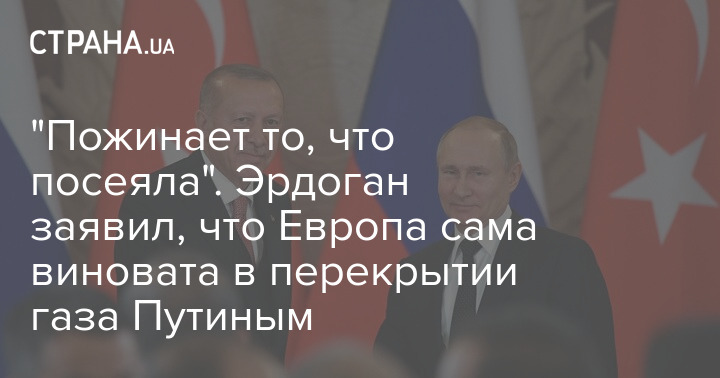 "Пожинает то, что посеяла". Эрдоган заявил, что Европа сама виновата в перекрытии газа Путиным