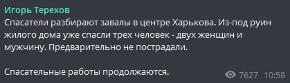 В Харькове после утреннего удара по центру города из-под завалов жилого дома спасли трех человек