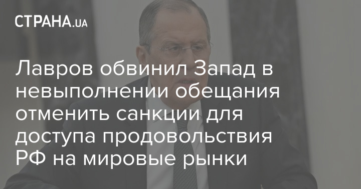 Лавров обвинил Запад в невыполнении обещания отменить санкции для доступа продовольствия РФ на мировые рынки