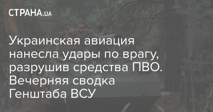 В течение суток для поддержки действий наземных группировок авиация Сил обороны совершила более восьми ударов, в ходе которых уничтожена боевая техника, средства противовоздушной обороны и значительное количество живой силы в опорных пунктах на Донецком и Южнобугском направлениях.