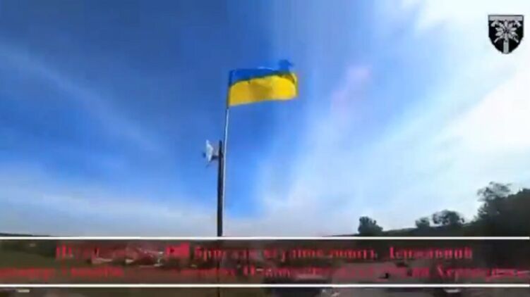 Военнослужащие 128-й бригады подняли украинский флаг в поселке Нововознесенское под Высокопольем в Херсонской области.