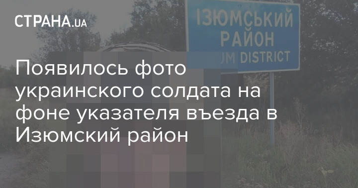 В интернете появилось фото украинского солдата на фоне указателя въезда в Изюмский район Харьковской области.