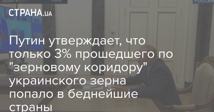 Президент РФ Владимир Путин снова высказался о "зерновом коридоре", повторив свои заявления о том, что украинское зерно, вопреки обещаниям, почти не идёт в беднейшие страны.