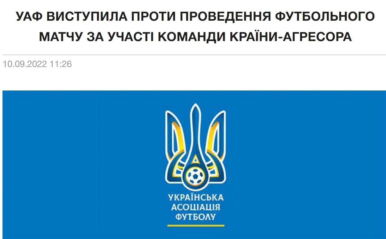 УАФ напомнила УЕФА и ФИФА, что сборная России находится под санкциями из-за вторжения РФ