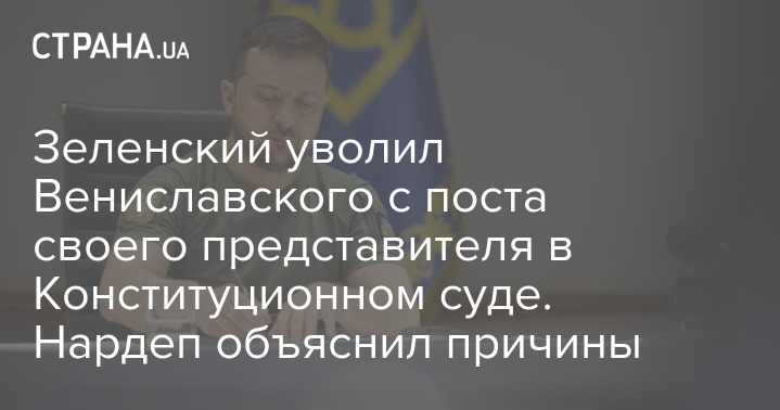 Президент Украины Владимир Зеленский уволил народного депутата Федора Вениславского с должности представителя президента в Конституционном суде.
