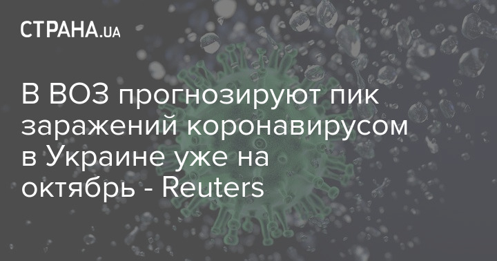 Во Всемирной организации здравоохранения (ВОЗ) ожидают, что в Украине пик заболеваемости COVID-19 придется на второй месяц осени.
