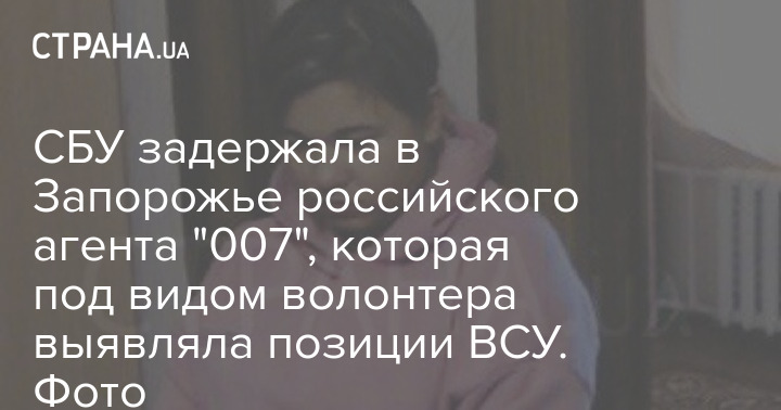 Контрразведка СБУ сообщает, что задержала в Запорожье российского агента с позывным "007". По данным СБУ, это девушка, которая приехала из оккупированных районов Запорожской области под легендой волонтера. Но на самом деле выполняла задание по выявлению дислокации украинских подразделений.