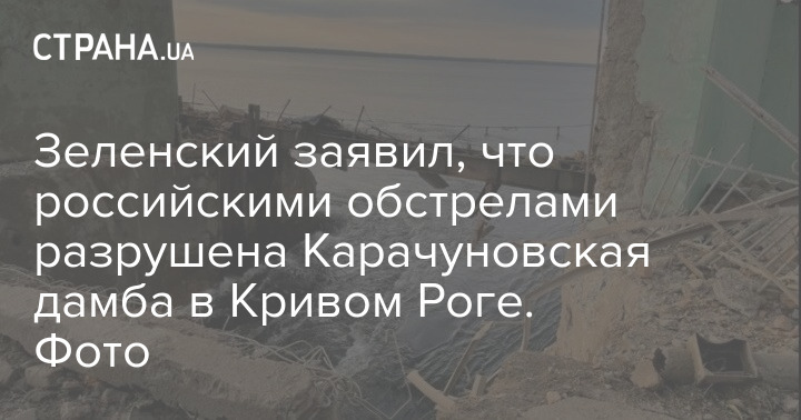 Зеленский заявил, что российскими обстрелами разрушена Карачуновская дамба в Кривом Роге. Фото