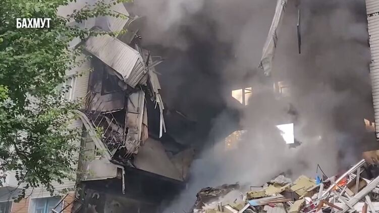 В Бахмуте обрушился почти целый подъезд многоэтажки. Скриншот