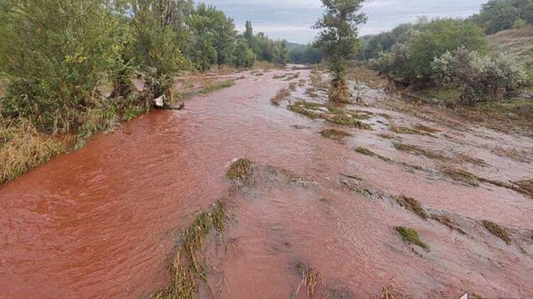 Вода в реке Ингулец покраснела после подтопления, которое произошло из-за удара по дамбе в Кривом Роге.