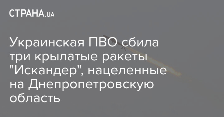 В пятницу, 16 сентября, украинская ПВО сбила три крылатые ракеты "Искандер", которые были запущены по Днепропетровской области.