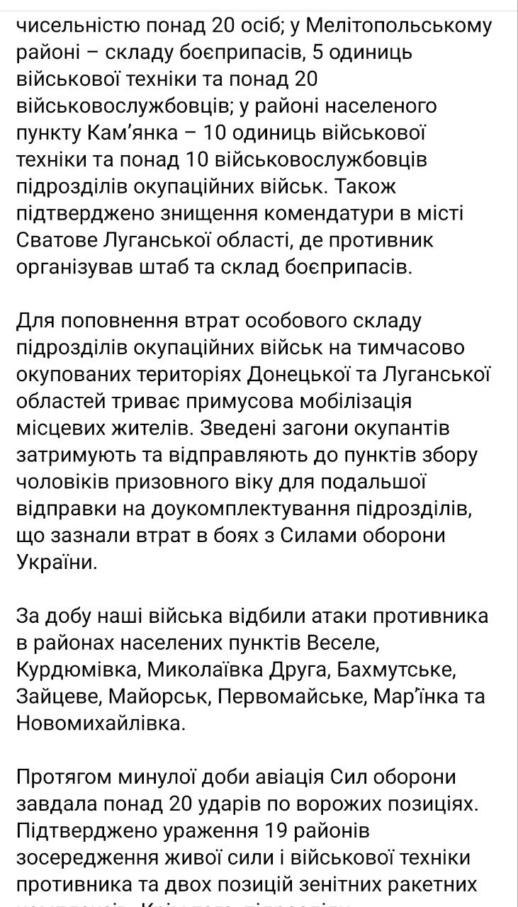 07.24 Основное из утренней сводки Генштаба: