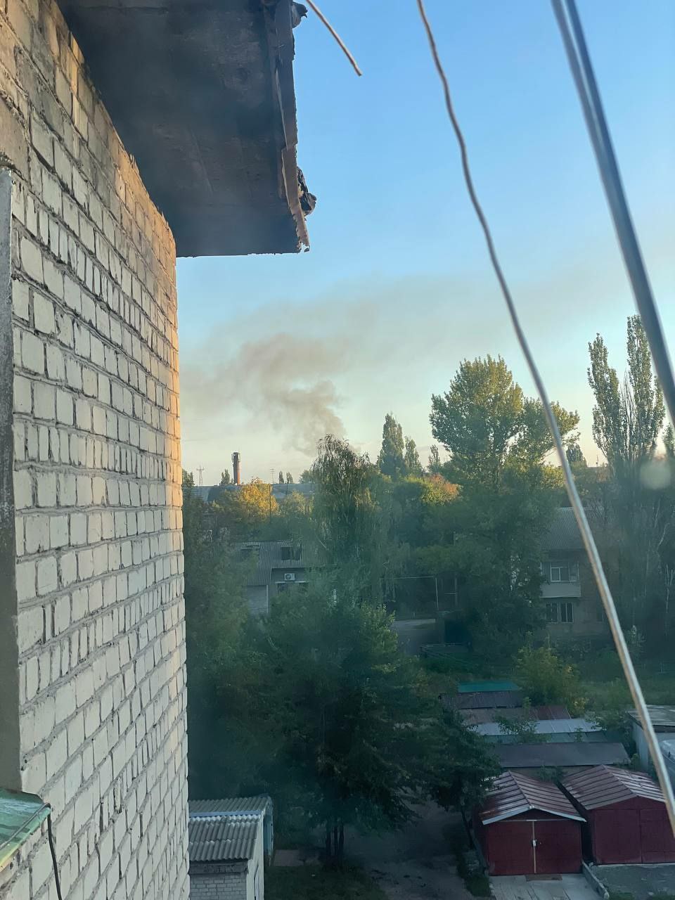 07:57 Утренний прилет по неподконтрольной Горловке. Над городом поднимается дым.