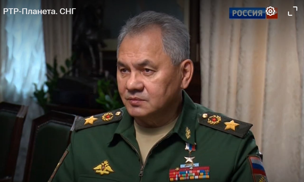 09:33 Российские телеканалы сейчас показывают интервью с министром обороны РФ Шойгу.
