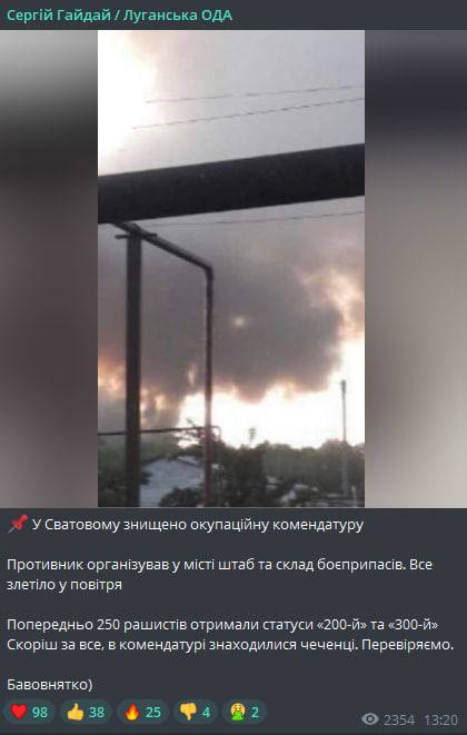 В неподконтрольном Сватово ("ЛНР") ВСУ 19 сентября разбомбили комендатуру.