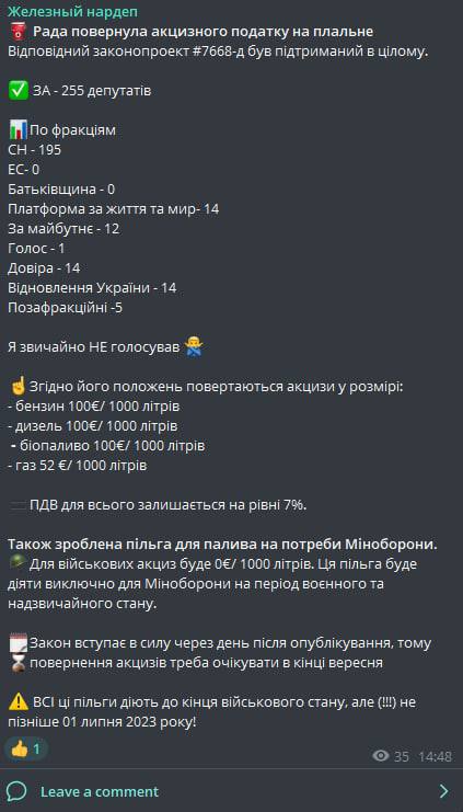 Об этом сообщил нардеп Алексей Гончаренко в своем тг-канале.