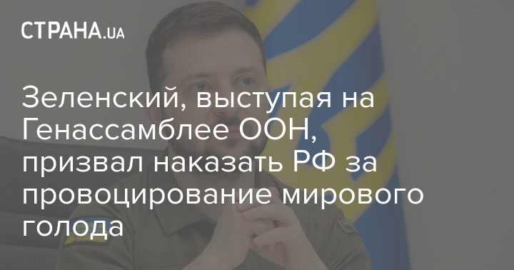Президент Владимир Зеленский, выступая на заседании по вопросам продовольственной безопасности на полях Генассамблеи ООН, призвал привлечь Россию к ответственности за провоцирование мирового голода.