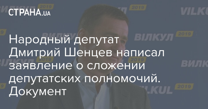 Народный депутат Дмитрий Шенцев написал заявление о сложении депутатских полномочий.