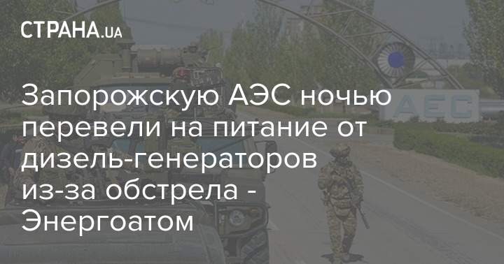 Запорожскую АЭС ночью перевели на питание от дизель-генераторов из-за обстрела - Энергоатом