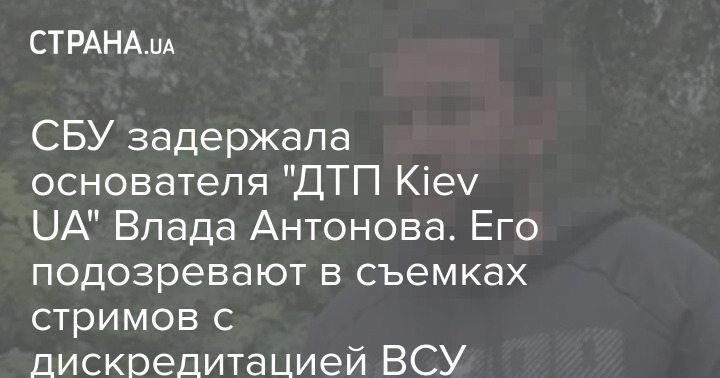 СБУ задержала основателя "ДТП Kiev UA" Влада Антонова. Его подозревают в съемках стримов с дискредитацией ВСУ