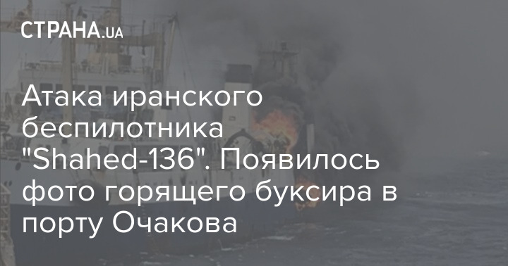 Атака иранского беспилотника "Shahed-136". Появилось фото горящего буксира в порту Очакова