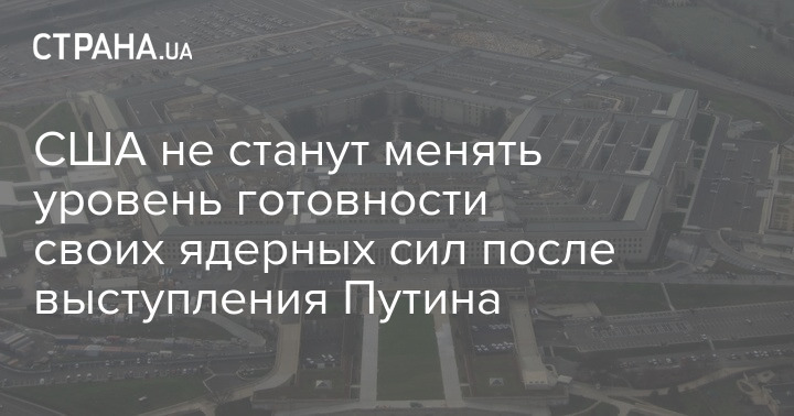 США не видят причин менять уровень готовности своих ядерных сил из-за слов президента РФ Владимира Путина о вероятности применения атомной бомбы.