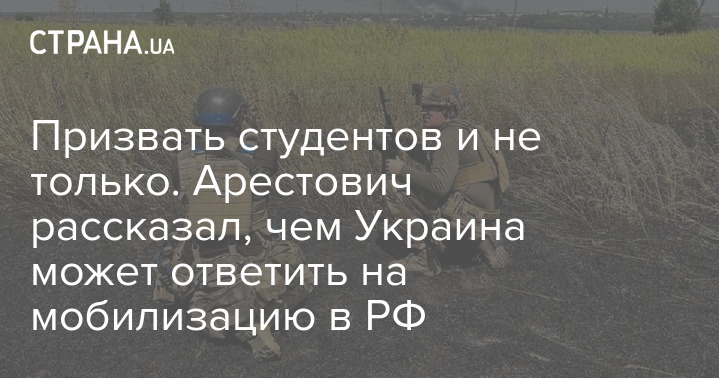 Напомним, вчера Арестович допустил, что всех украинских студентов призовут в армию. Он заявил, что, "пока студентов не трогают, они не идут в армию, но вполне может оказаться такое, что пойдут вообще все или очень многие".