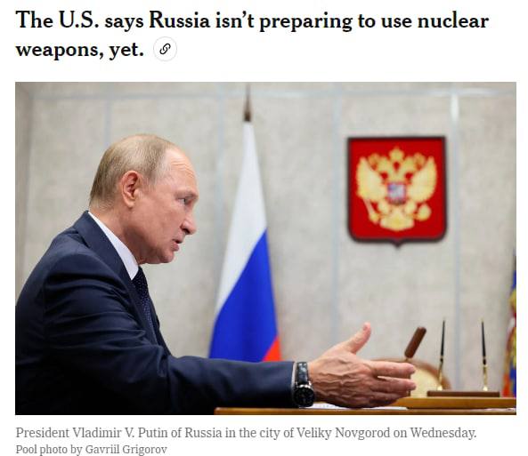 Ранее издание The Washington Post опубликовало материал о том, что США несколько месяцев слали Москве предупреждения о последствиях применения ядерного оружия в Украине.