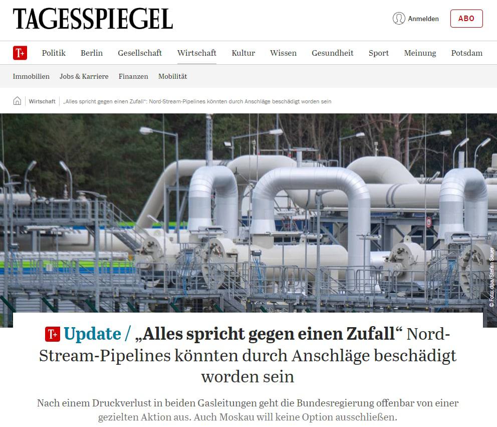Более того: в понедельник, когда стало известно о существенном падении давления в "Северных потоках", Берлин предположил, что речь шла о целенаправленной атаке.