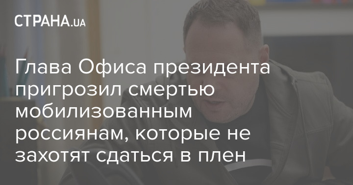 Глава Офиса президента Андрей Ермак пригрозил смертью мобилизованным россиянам, которые не пожелают сдаться в плен.