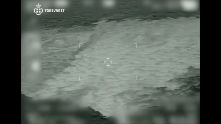 Также датские военные опубликовали кадры с места утечки, которые показывают наличие большого пятна на поверхности воды.