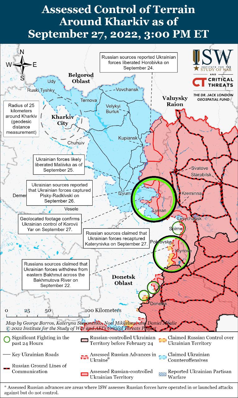 Кроме того, в течение 26 и 27 сентября ВСУ взяли под контроль несколько сел к северо-западу и северу от Лимана (ранее сообщалось, в частности, о Екатериновке, что в утренней сводке косвенно подтвердил Генштаб)..jpg)