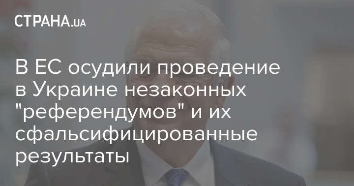 ЕС осуждает проведение незаконных "референдумов" и их сфальсифицированные результаты, заявил глава европейской дипломатии Жозеп Боррель.