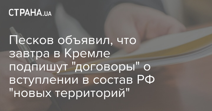 По словам Пескова, договоры будут подписаны со всеми "4 территориями", где прошли референдумы. Будет выступление Путина.