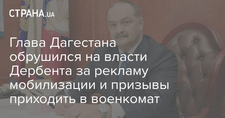 Глава Дагестана Сергей Меликов раскритиковал власти Дербента за решение запустить по улицам города автомобили с громкоговорителями, чтобы призывать мужчин срочно явиться в военкомат.