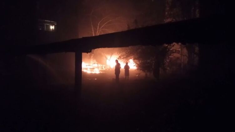 В опубликованном видео виден масштабный пожар во дворе, который начался после прилета ракеты.