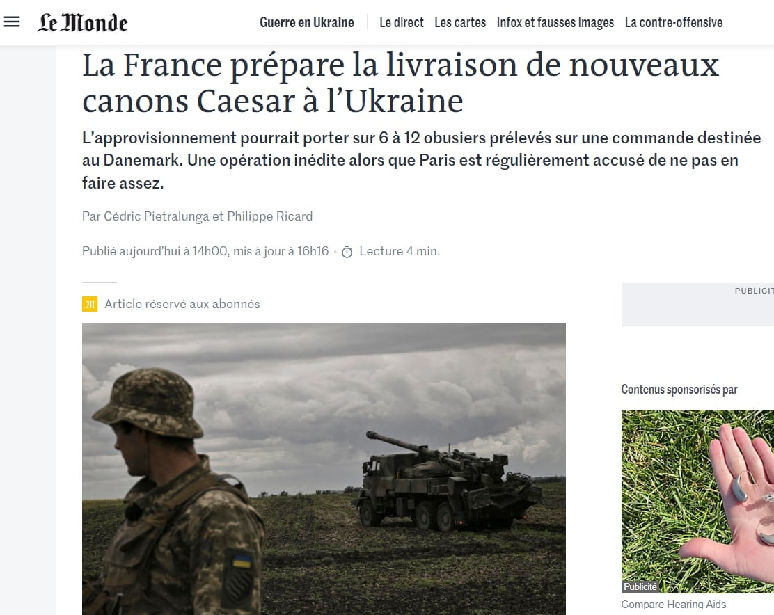 Франция готова передать ВСУ еще одну партию самоходных артиллерийских установок Caesar - Le Mond