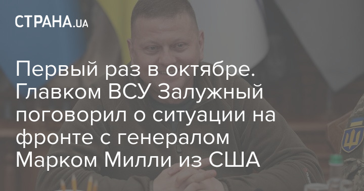 Главнокомандующий ВСУ генерал Валерий Залужный провел сегодня телефонный разговор с председателем объединенного комитета начальников штабов США генералом Марком Милли.