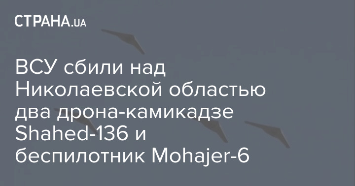 Телеграм-канал Воздушных сил ВСУ сообщает о том, что два дрона-камикадзе Shahed-136 и один ударный беспилотник Mohajer-6 сбиты сегодня утром в небе над Николаевской областью