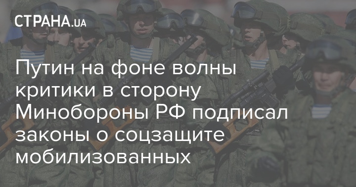 Президент России Владимир Путин подписал ряд законов о социальной защите мобилизованных на фоне массовых сообщений о нарушениях в ходе мобилизации.