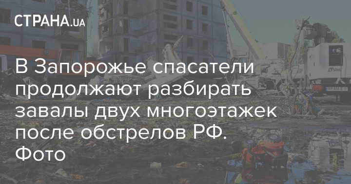 В Запорожье спасатели продолжают разбирать завалы двух многоэтажек после обстрелов РФ. Фото